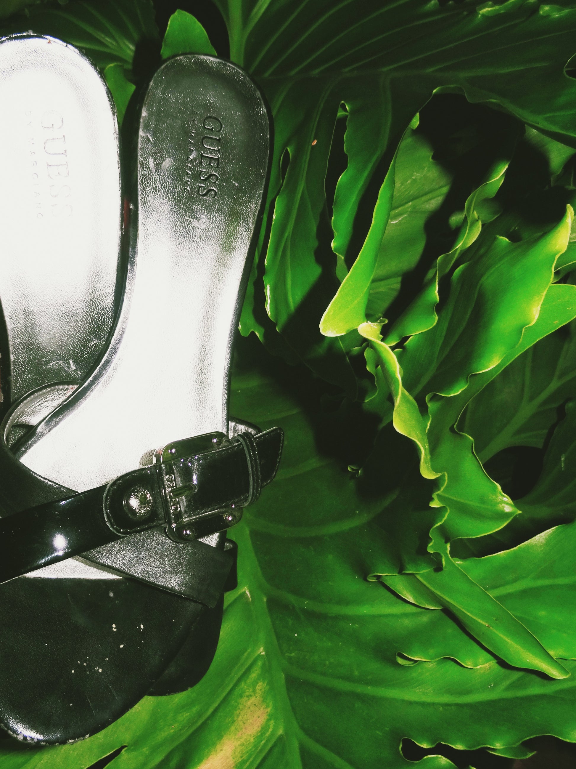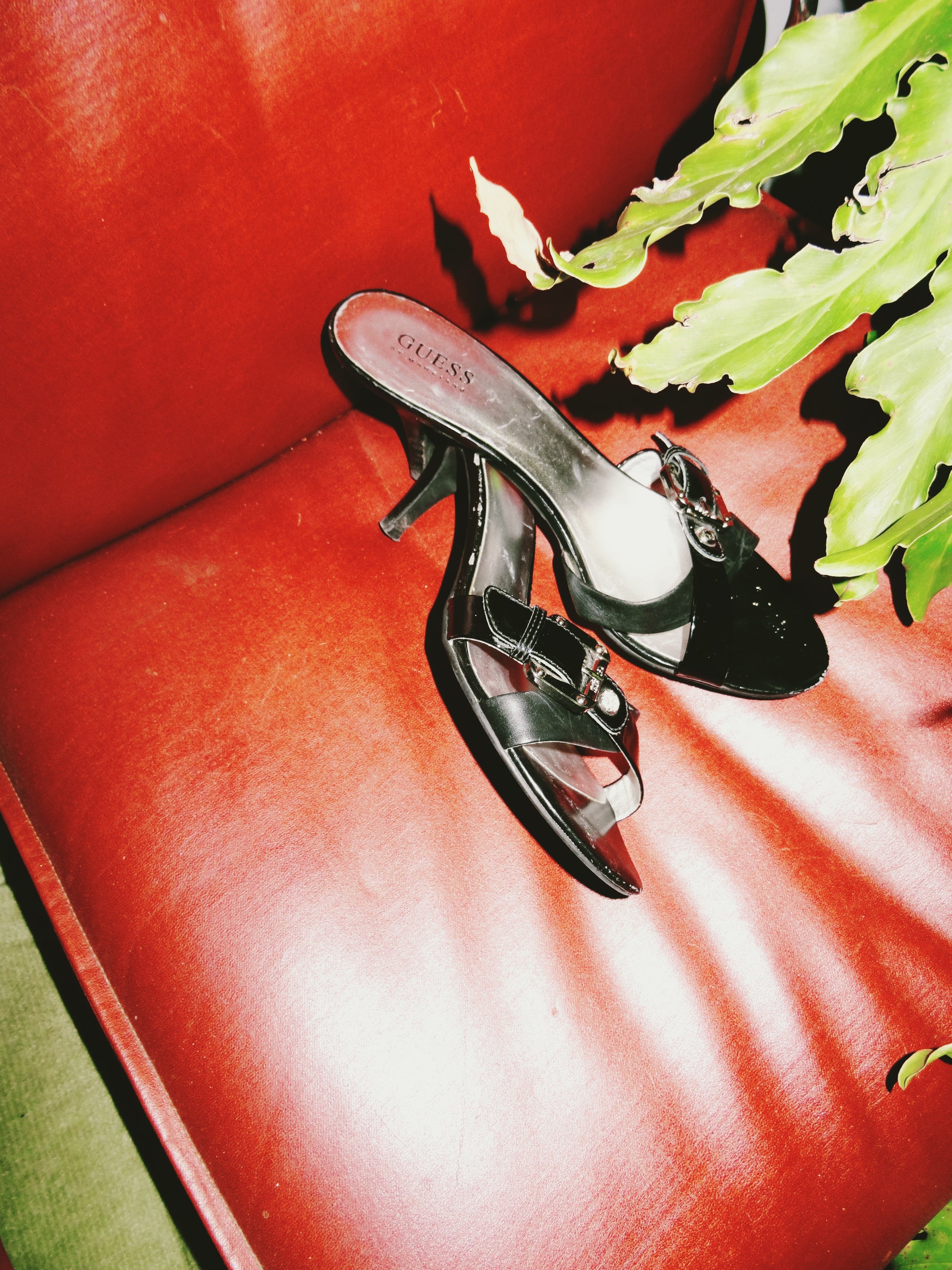 GUESS Buckle Black Kitten Sandal (Size 8.5)