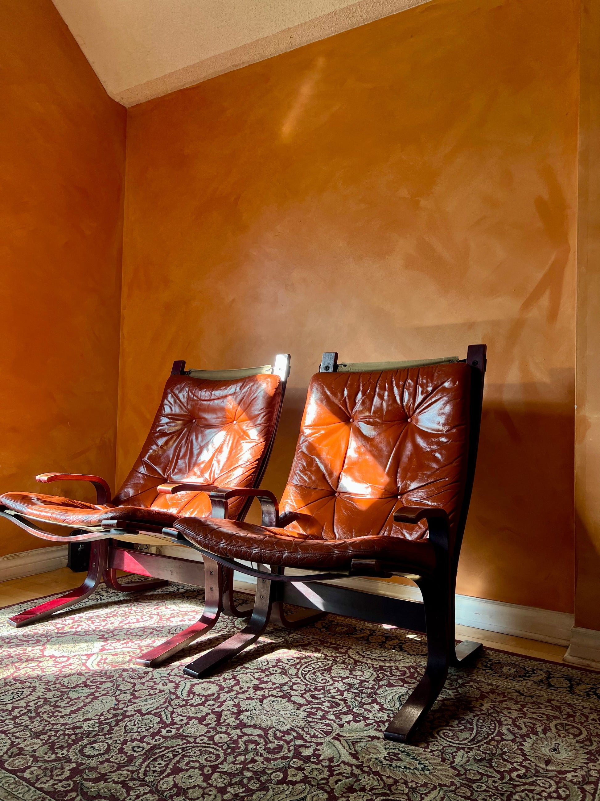 Pair of Leather Easy Chairs Model “Siesta” by Ingmar Relling for Westnofa (1970s)