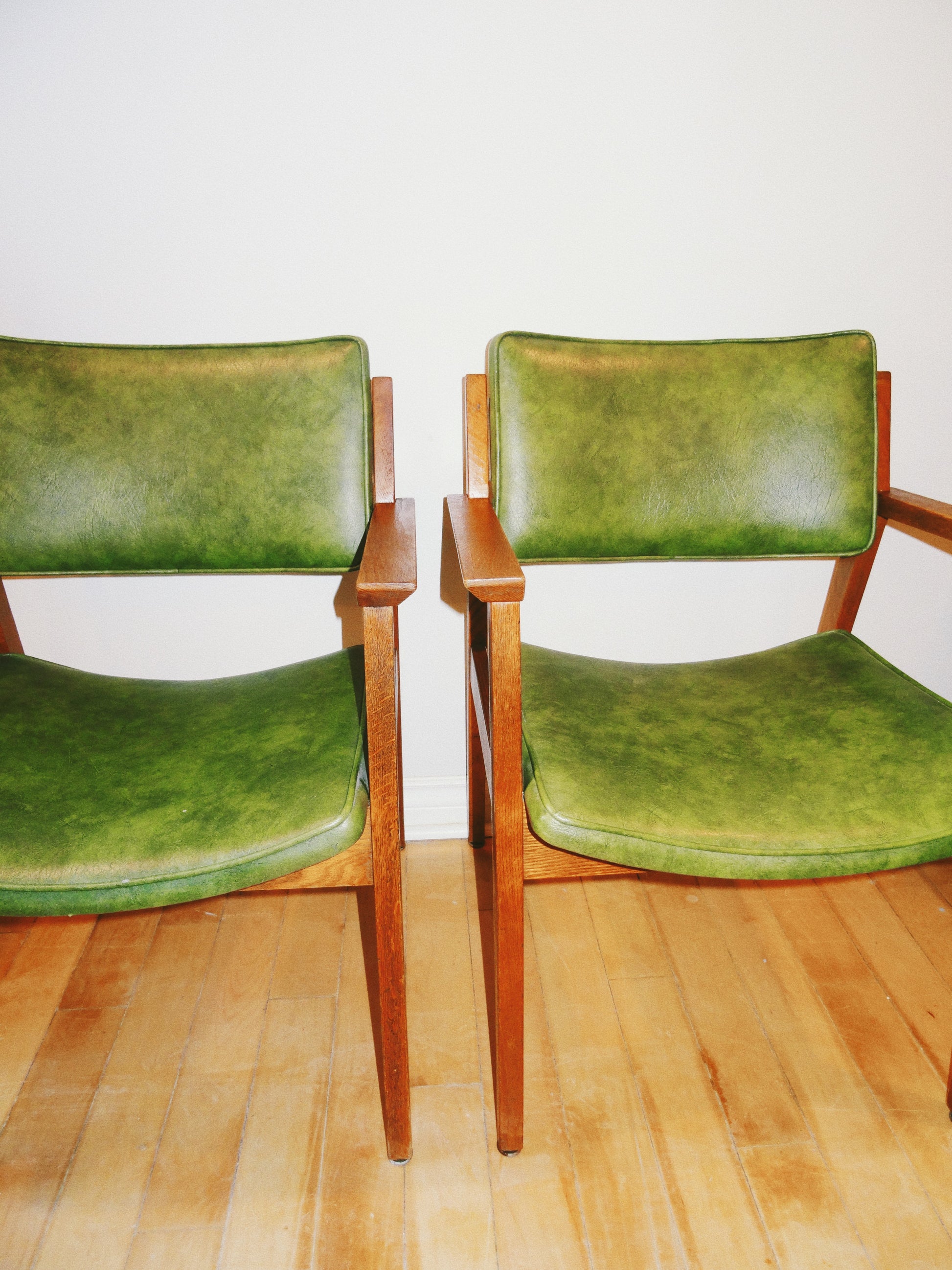 Pair of Mid Century Genuine Leather Accent Chairs