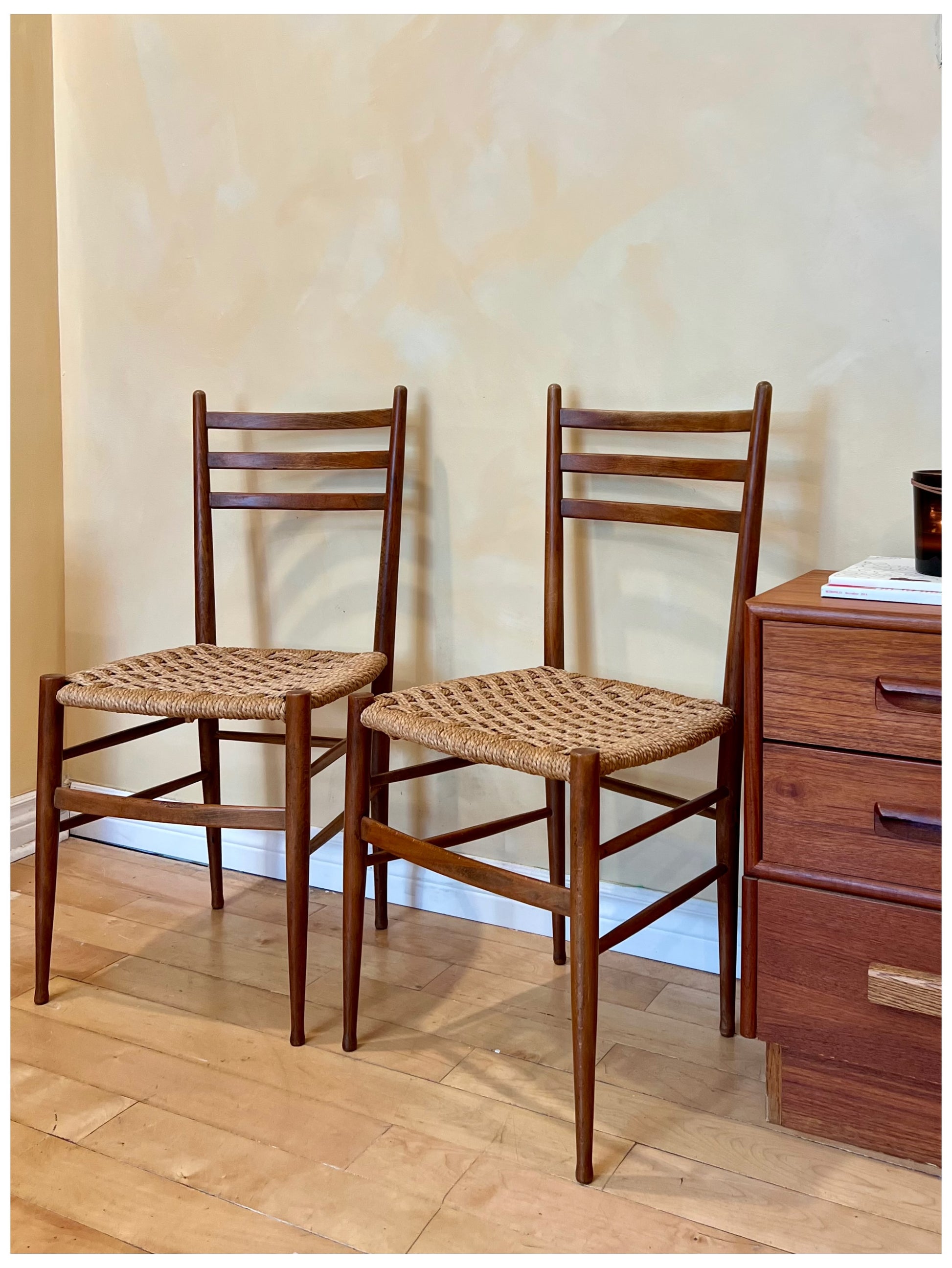 Set of Two Teak Woven Chairs