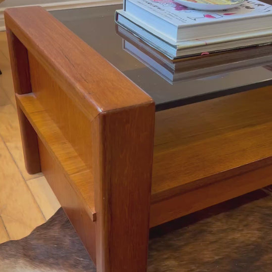 Solid Teak and Smoked Glass Mid Century Coffee Table